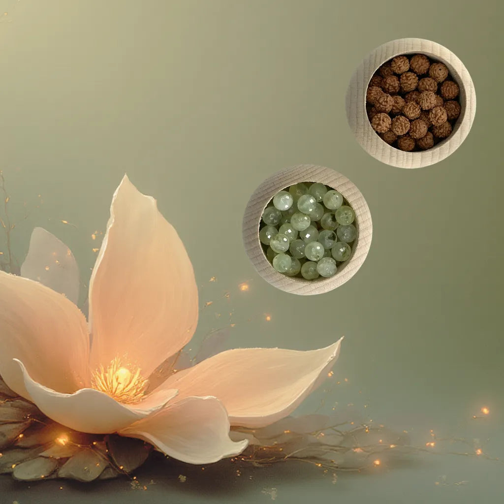 L’unione di pietre naturali e semi sacri per una sinergia perfetta che favorisce presenza, armonia ed evoluzione interiore.