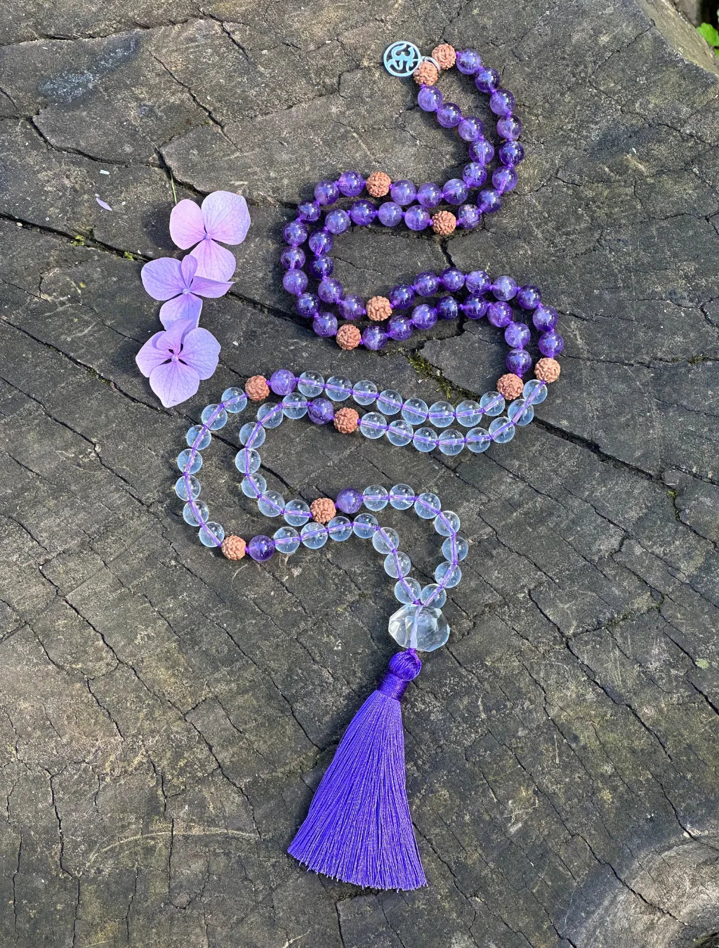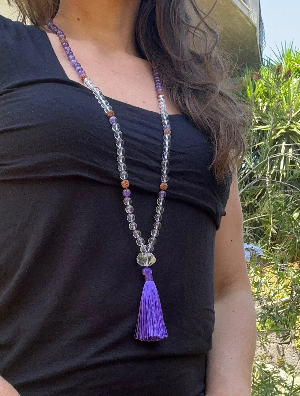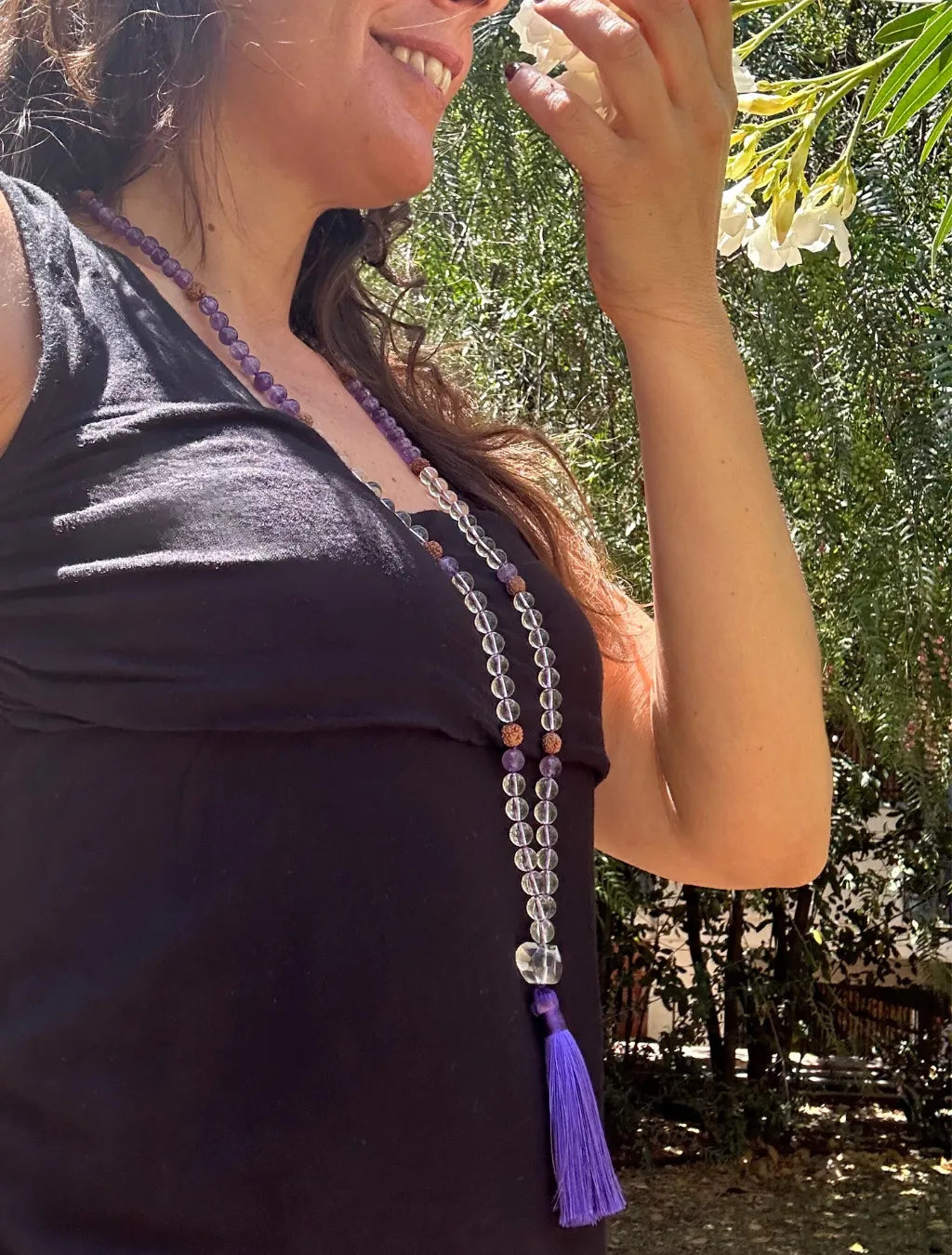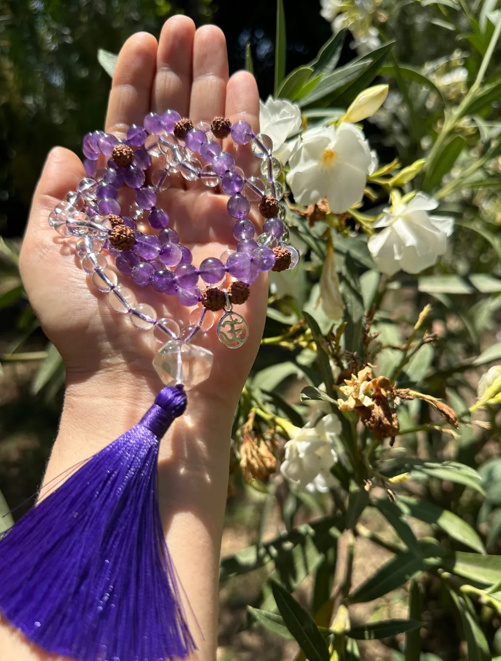 Mālā Mille Petali | Ametista, Rudraksha e Quarzo