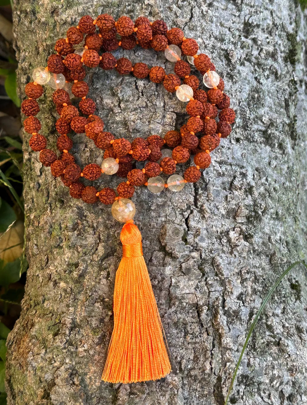 Mālā Mille Petali | Rudrākṣa, Quarzo Citrino