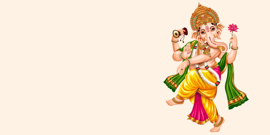 Esistono diversi miti sulla nascita di Gaṇeśa, ma uno dei più diffusi lo descrive come figlio di Śiva e Pārvatī, e spiega l’origine della sua testa di elefante. Si racconta che Pārvatī, per proteggersi, generò Gaṇeśa dal proprio sudore, affidandogli il compito di sorvegliare la sua dimora. Quando Śiva, ignaro, chiese di entrare, il giovane Gaṇeśa glielo impedì. Offeso e colmo d’ira, Śiva ordinò che gli fosse tagliata la testa. Più tardi, su supplica di Pārvatī, gli dèi sostituirono la testa recisa con quella del primo animale incontrato: un elefante. Da allora, la sua testa d’elefante è divenuta simbolo di fedeltà, intelligenza e potere discriminante. Un altro mito narra che Gaṇeśa nacque direttamente dallo sguardo di Śiva e Pārvatī, come manifestazione della loro energia congiunta. Per questo è visto come incarnazione della śakti creativa, unione di forza maschile e femminile. La sua testa di elefante, in questa versione, sarebbe stata donata da Indra, re degli dèi, come segno di saggezza e di forza regale.