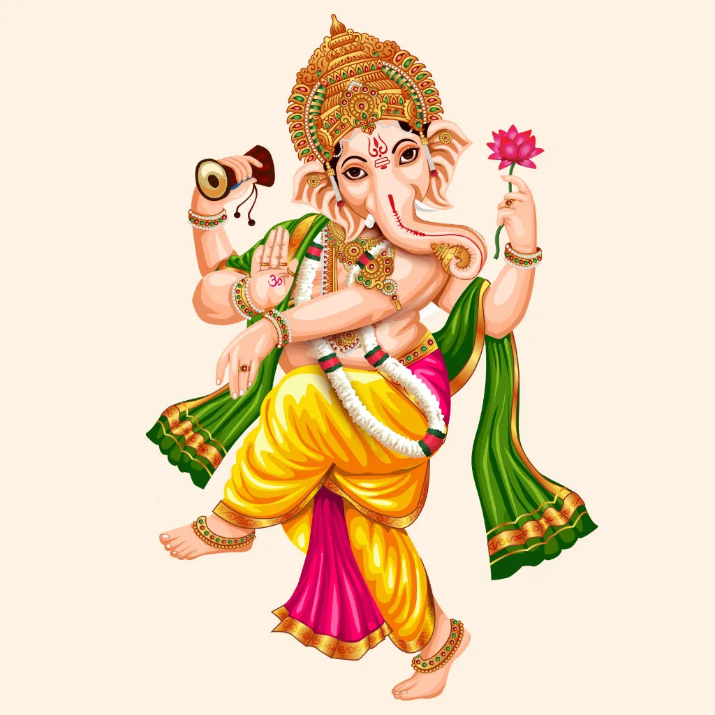 Gaṇeśa è una delle divinità più amate e venerate non solo in India ma in tutto il mondo, poiché la sua presenza trascende scuole, caste e persino religioni: è invocato dagli hindu, dai buddhisti e dai giainisti come simbolo universale di saggezza e prosperità. La sua immagine, posta agli ingressi dei templi, delle case e dei luoghi di studio, diventa protezione da ogni influsso negativo e richiamo di abbondanza. Raffigurato in molte forme, danzante, seduto o in atto di donare dolci, egli irradia gioia e benevolenza. La sua festa più importante è il Gaṇeśa Caturthī, celebrata con processioni, canti e statue che, immerse nelle acque, ritornano al grembo della natura, segno del continuo ciclo di creazione e dissoluzione.