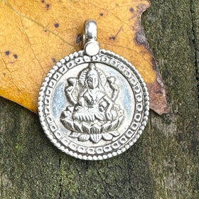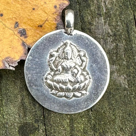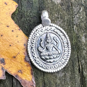 Lakṣmī è una figura centrale nella tradizione indù, venerata come la devī della buona sorte, dell’abbondanza, della bellezza e della fertilità. La sua presenza è simbolo di prosperità e benessere in ogni aspetto della vita umana, dai beni materiali alla quiete spirituale. Si mostra seduta su un fiore di loto, simbolo di purezza e perfezione, circondata da splendidi gioielli e vesti sontuose. La sua postura trasmette un senso di serenità e maestosità, ma anche di accoglienza e di protezione, incarnando la compassione e il sostegno materno.