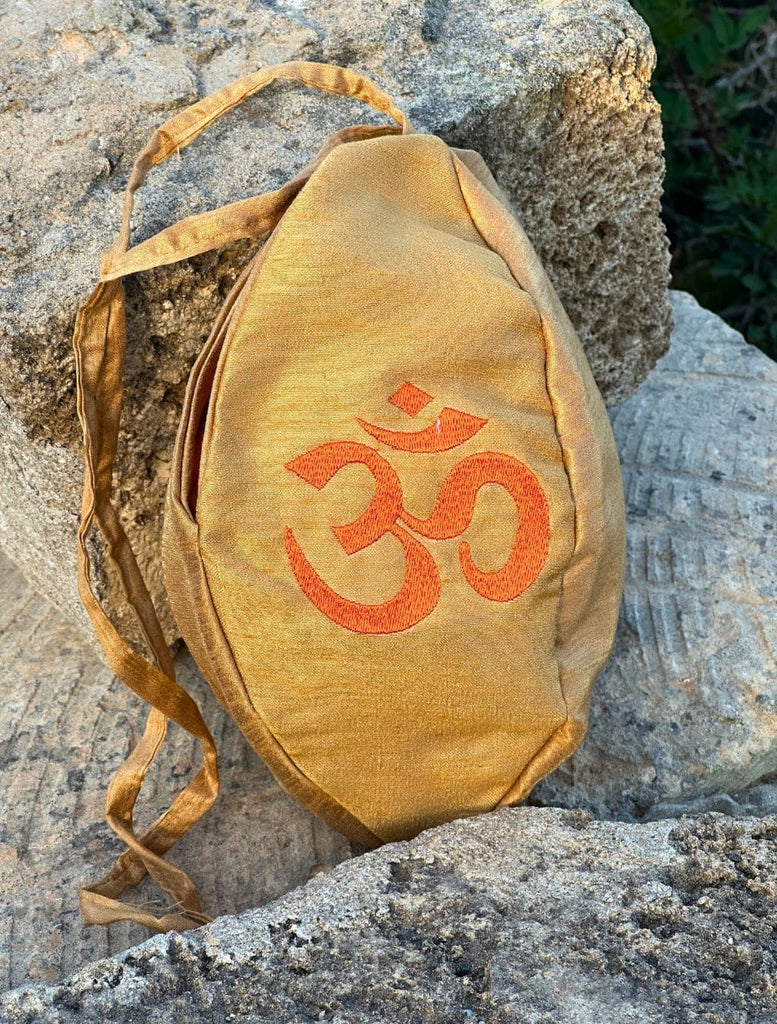 Questa speciale custodia realizzata in morbido tessuto e adornata con il simbolo Oṃ, è ideale per accompagnare la tua pratica meditativa e proteggere la tua japamālā.